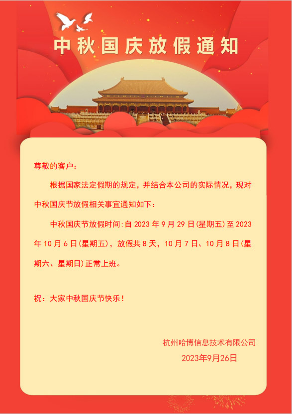 哈博網(wǎng)絡(luò)2023中秋國慶節(jié)放假安排通知!